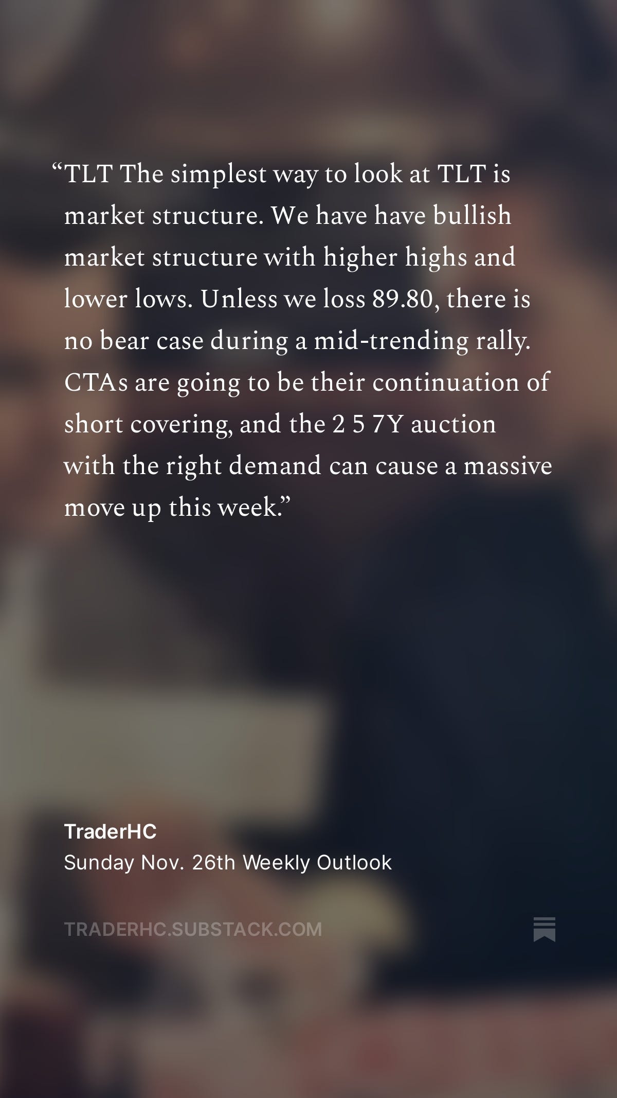 Free Mid-Week UpdateReview and what's left for the weekTraderHCNov 29, 2023∙ Paid81Share From my Weekly Outlook on SundayThis post is for paid subscribersAlready a paid subscriber? Sign in