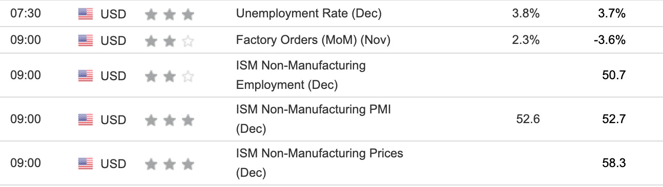 F: EURO CPI, Unemployment rate, NFP, ISM Non-Manuf. PMI/PRICES
