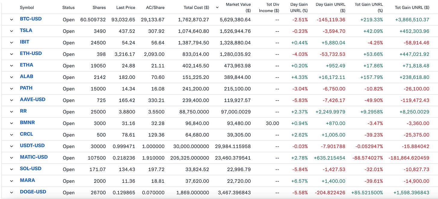 We have added PATH and RR recently while the last 6 months IBIT was accumulated since my last post in July 2025. CRCL and ALAB were added over the last 6 months as well. TSLA was bought during the summer of 2025.